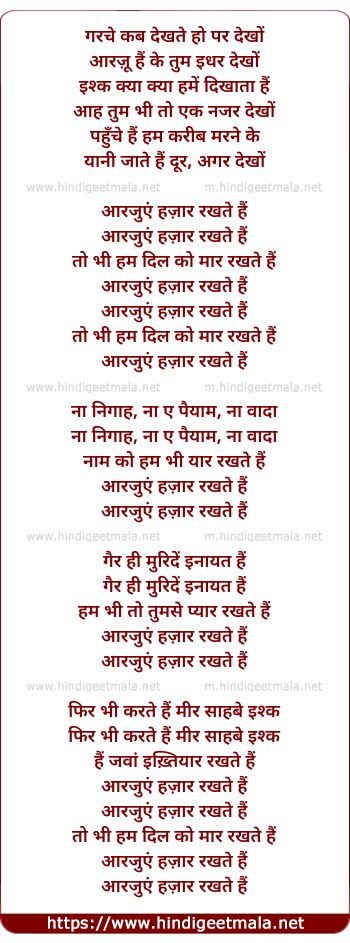 Lyrics of Aarzu - गरचे कब देखते हो पर देखों