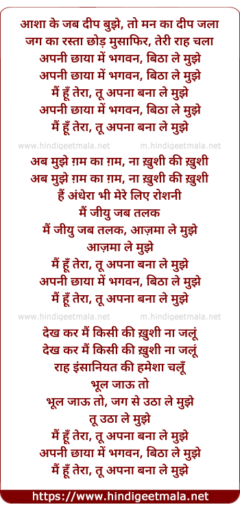 Lyrics of Aasha Ke Jab Dip Bujhe - आशा के जब दीप बुझे