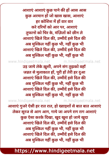 Lyrics of Aashayein Aashayein..... - आशाएं आशाएं