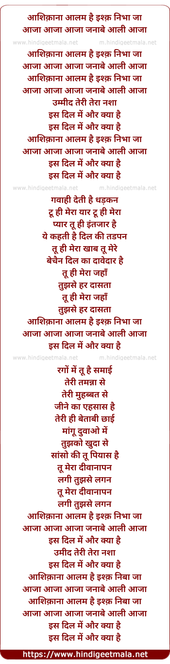 Lyrics of Aashiqana Aalam Hai Ishq Nibha Ja - आशिक़ाना आलम है इश्क़ निभा जा