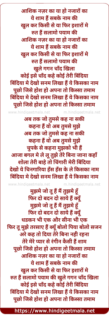 Lyrics of Aashiq Nazar Ka - आशिक नज़र का