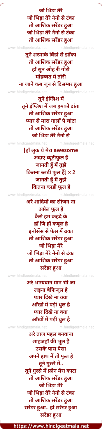 toh aashiq surrender hua jo bhida tere naino se tanka