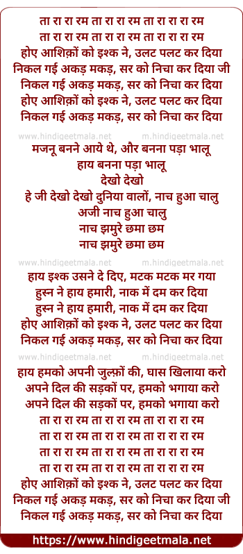 Lyrics of Aashiqon Ko Ishq Ne Ulat Palat (Part - L) - ता रा रा रम ता रा रा रम ता रा रा रा रम
