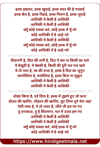 Lyrics of Aashiqui Yeh Kaisi Hai Aashiqui (Title Song) - इश्क इबादत, इश्क खुदाई, इश्क वफ़ा की है परछाई