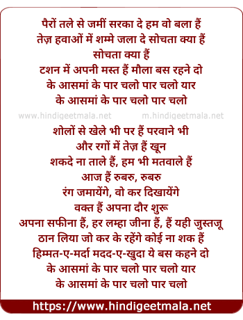 Poetic Translation - Lyrics of Aasma Ke Paar (Club Version) - पैरों तले से जमीं सरका दे हम वो बला हैं