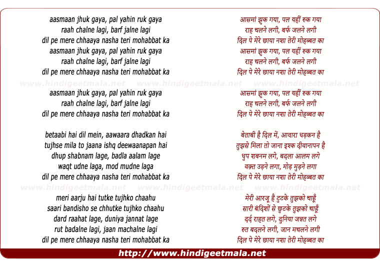 Lyrics of Aasmaan Jhuk Gaya, Pal Yahin Ruk Gaya - आसमां झुक गया, पल यहीं रुक गया