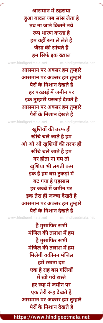 Lyrics of Aasmaan Par - आसमान पर