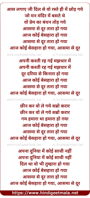 Lyrics of Aasmaan Se Dur Tara Ho Gaya - आसमान से दूर तारा हो गया