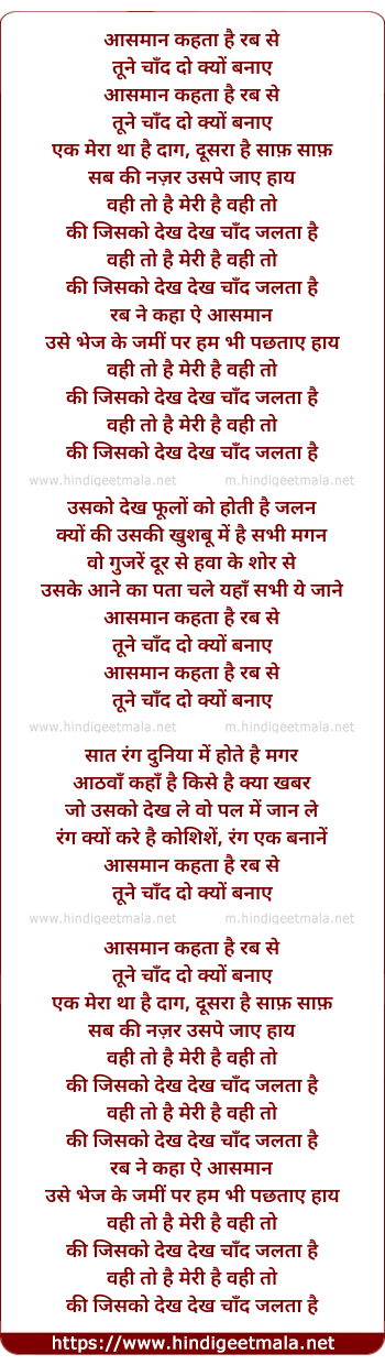 Lyrics of Aasman Kehta Hai Rab Se - आसमान कहता है रब से