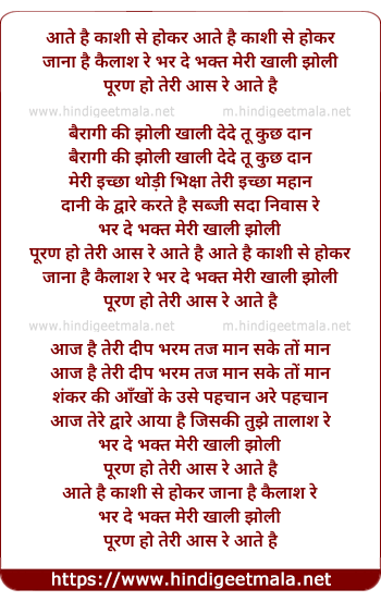 Lyrics of Aate Hai Kashi Se Hokar - आते है काशी से होकर