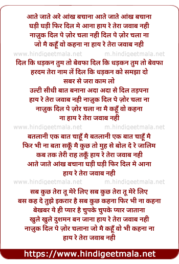 aate jate aankh bachana ghadi ghadi fir dil me aana