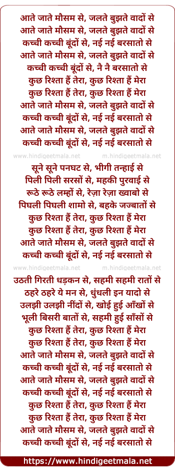 Lyrics of Aate Jaate (Remix) - आते जाते मौसम से, जलते बुझते वादों से