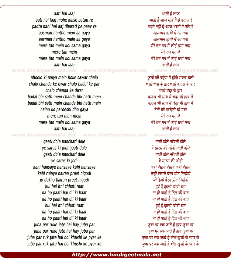 Lyrics of Aati Hai Laaj Mohe Kaise Bataau - आती है लाज मोहे कैसे बताऊ