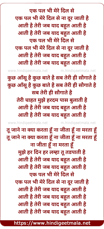 Lyrics of Aati Hai Teri Yaad - आती है तेरी याद