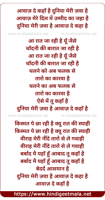 Lyrics of Aawaz De Hum Kaha Milta Nahi Hai - आवाज़ दे हम कहाँ मिलता नहीं है