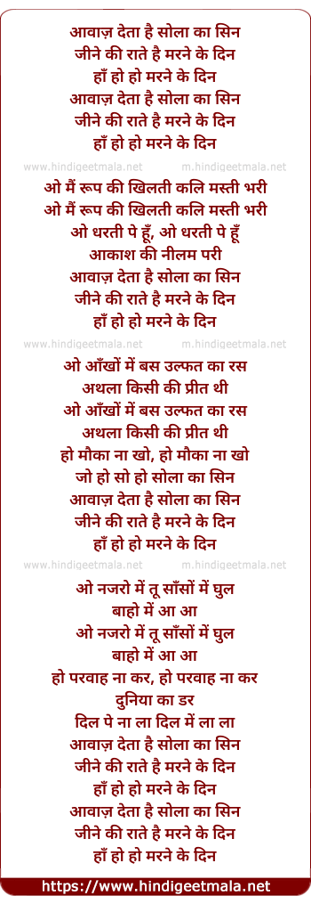 Lyrics of Aawaz Deta Hai Sola Ka Sin - आवाज़ देता है सोला का सिन
