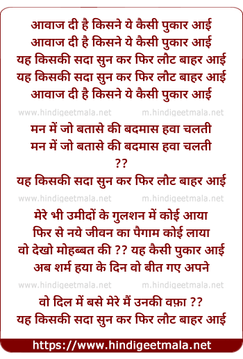 Lyrics of Aawaz Di Hai Kisne Ye Kaisi Pukar Aayi - आवाज दी है किसने ये कैसी पुकार आई