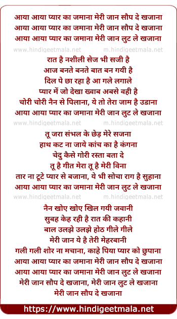 Lyrics of Aaya Aaya Pyar Ka Zamana - आया आया प्यार का जमाना