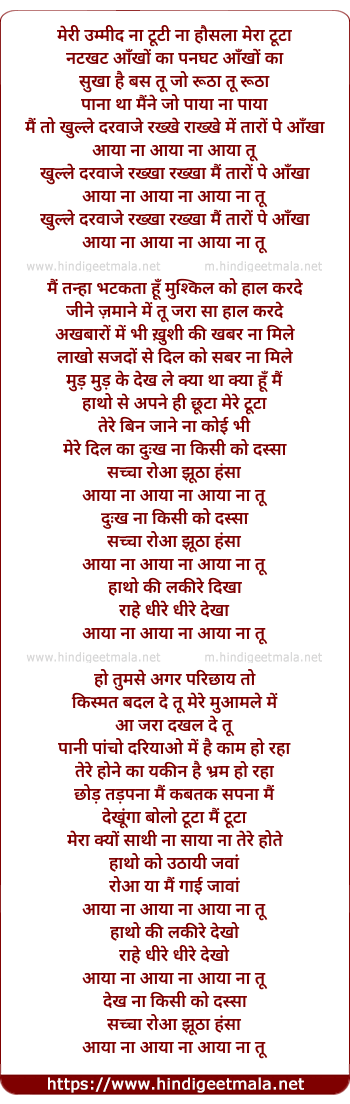 Lyrics of Aaya Naa Tu - आया ना तू