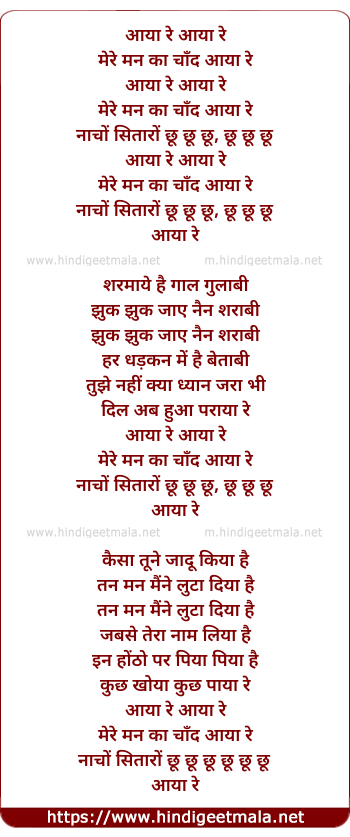 Lyrics of Aaya Re Mere Man Ka Chand - आया रे मेरे मन का चाँद