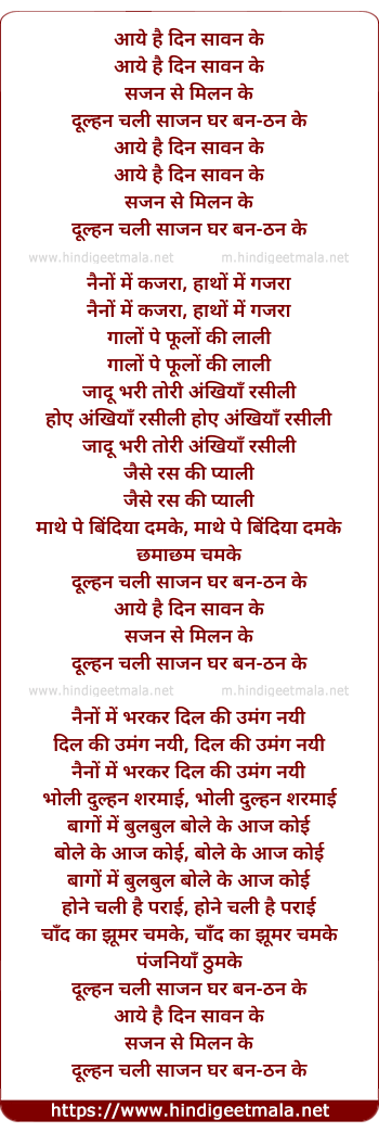 Lyrics of Aaye Hai Din Sawan Ke - आये है दिन सावन के