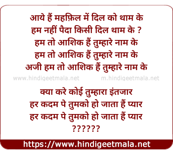 Lyrics of Aaye Hai Mehfil Me Dil Ko Tham - आये हैं महफ़िल में दिल को थाम के
