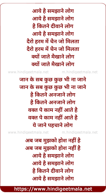 Lyrics of Aaye Hai Samjhaane Log - आये है समझाने लोग