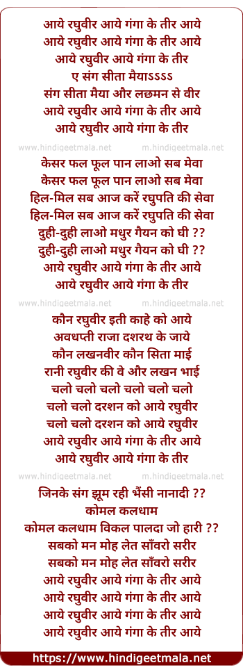 Lyrics of Aaye Raghuveer Aaye Ganga Ke Teer - ( आये रघुवीर आये गंगा के तीर
