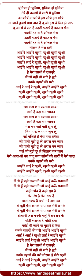 Lyrics of Aayi Re Aayi Re Khushi - आई रे आई रे खुशी