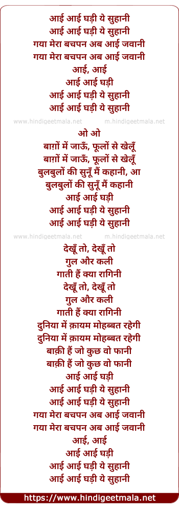 Lyrics of Aayi Aayi Ghadi Ye Suhani - आई आई घड़ी ये सुहानी