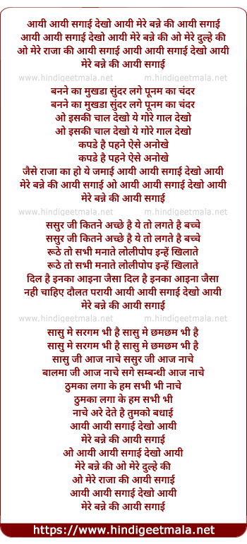 aayi aayi sagai dekho aayi mere banne ki o mere dulhe ki