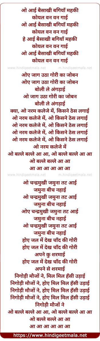 Lyrics of Aayi Baisakhi Bagiya Mehki - ओ आई बैसाखी बगियाँ महकी