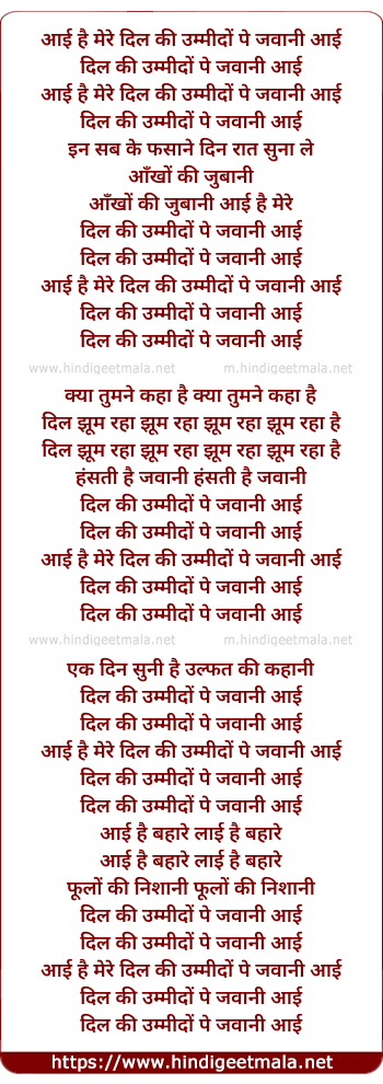 Lyrics of Aayi Hai Mere Dil Ki Ummido Pe Jawani - आई है मेरे दिल की उम्मीदों पे जवानी आई
