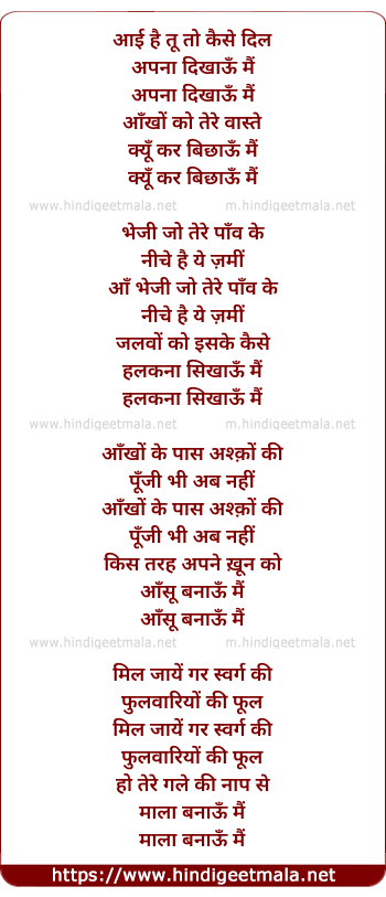 Lyrics of Aayi Hai Tu To - आई है तू तो