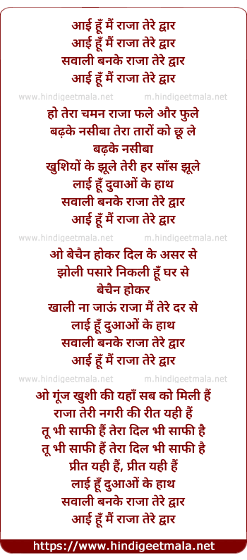 Lyrics of Aayi Hu Mai Raja Tere Dwar - आई हूँ मैं राजा तेरे द्वार