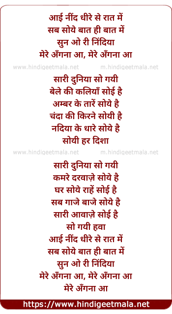 Poetic Translation - Lyrics of Aayi Neend - आई नींद