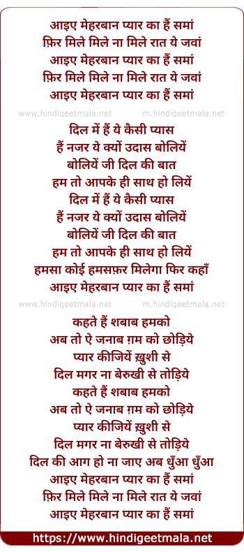 Lyrics of Aayie Meharban - आइए मेहरबान