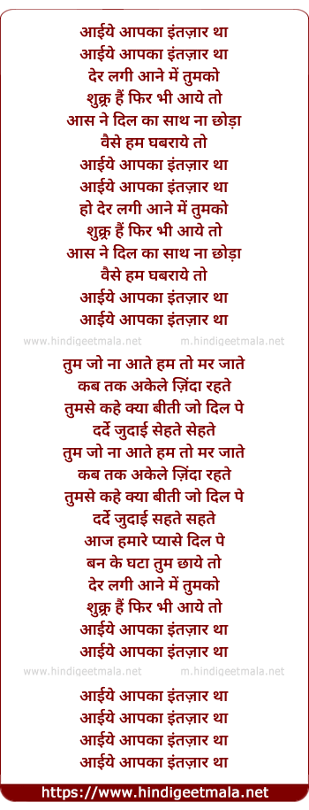 Lyrics of Aayiye Aapka Intezar Tha (Male) - आईये आपका इंतज़ार था