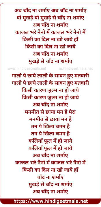 Lyrics of Ab Chand Na Sharmaye - अब चाँद ना शर्माए