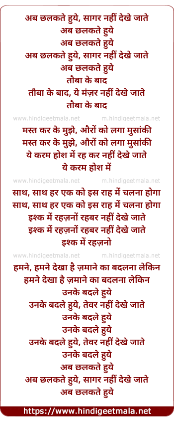 Lyrics of Ab Chhalakate Hue Saagar Nahin Dekhe Jaate - अब छलकते हुये, सागर नहीं देखे जाते