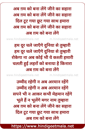 Lyrics of Ab Gam Ko Bana Lenge Jine Ka Sahara - अब ग़म को बना लेंगे जीने का सहारा