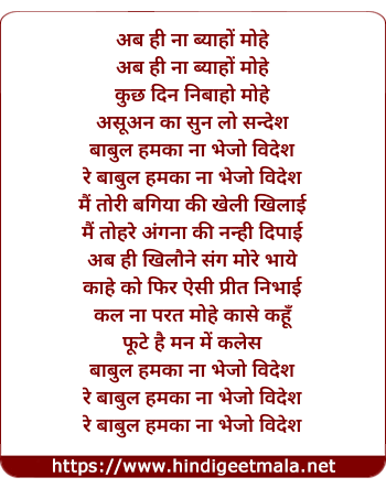 re babul hamka na bhejo veidesh