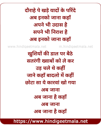 Lyrics of Ab Jaana Kaha - अब जाना कहाँ