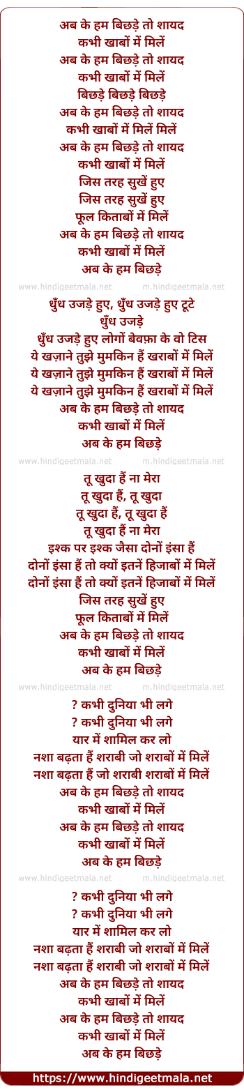 Lyrics of Ab Ke Hum Bichhde - अब के हम बिछड़े तो शायद