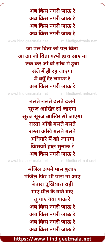 Lyrics of Ab Kis Nagari Jaao Re - अब किस नगरी जाऊ रे