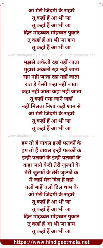 Lyrics of Ab Koi Jaye Kaha - ओ मकरी जिंदगी के सहारे