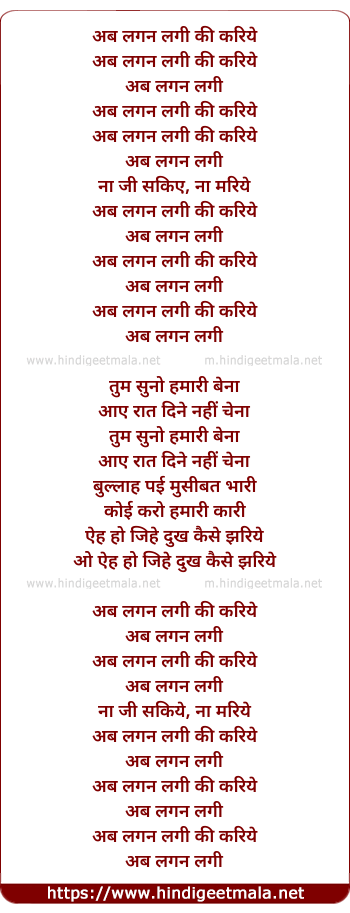 Lyrics of Ab Lagan Lagi Ki Kariye - अब लगन लगी की करिये