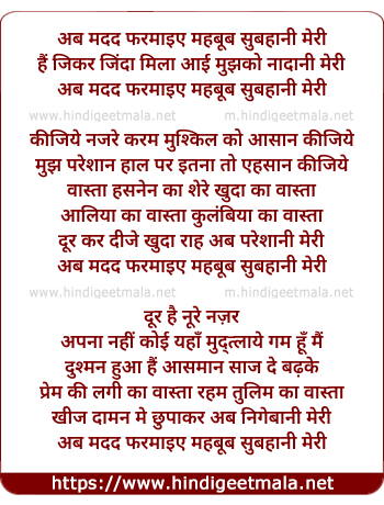 Lyrics of Ab Madad Farmayiye - अब मदद फरमाइए
