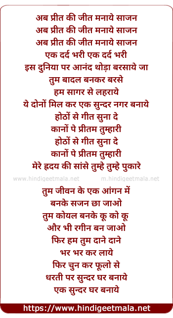 Lyrics of Ab Preet Ki Jeet Manaye Sajan - अब प्रीत की जीत मनाये साजन