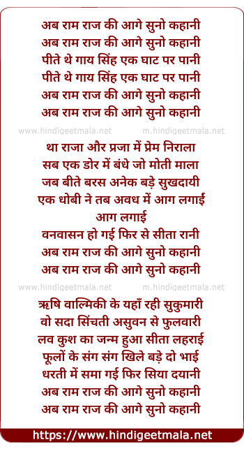 Lyrics of Ab Ram Raj Ki Aage Suno Kahani - अब राम राज की आगे सुनो कहानी